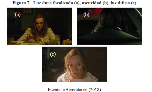 En «Hereditary» (2018), los estilos de iluminación desempeñan un papel clave en la construcción de la atmósfera y el desarrollo de los temas de la película, sobre todo a través de la manipulación de la luz para influir en la percepción psicológica y emocional del espectador, además de profundizar en las complejidades emocionales y psicológicas de los personajes.