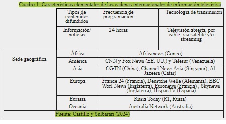Palabras clave: Cadenas internacionales de información televisiva, tipos de televisión, análisis de la TV.