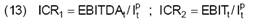 ICR1 and ICR2 express a firm's capacity to pay interest within a given period, t, with income margins (Healy, 1985; Sloan, 1996; Goldstein, Ju & Leland, 2001; Dothan, 2006; Moir & Sudarsanam, 2007). ICR2 expresses a more conservative approach: (Dt + At) ³ 0 ≥ EBITDAt ³ EBITt ≥ ICR2 ≥ ³ ICR1 as frequently used in bank loan agreements (Gray, Mirkovic & Ragunathan, 2006), when applying an income approach. Other authors (Bonazzi & Iotti, 2014) express ICRs for a given period, t, as follows (14):