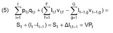 In equation (5), pt,i is the price per unit, at a given time t, of goods and services sold I : I ³ 1, qt is the quantity sold, and It,f and It"1,f are inventory items F : F ³ 1 and G : G ³ 1, respectively, at a given time, t and t-1. Every item is valued at its respective value per unit (v). St is total sales at a given time t, then DIt,t"1 is the variation in inventory values between t-1 and t. Inventories in the income statement and balance sheet have equal values, so at It = WCiat and It-1 = WCiat-1. The value of production (VP) is a flow value (Dechow & Dichev, 2002) that is in formation during a period, in our case t , without consideration of values during period T Î [t-1, t]. Operative costs, for a given time t, are as follows: