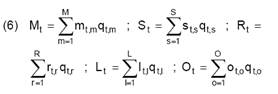 Mt is the cost of raw materials, St is the cost of services, Rt is the cost of rent and leasing, Lt is labor cost and Ot represents other operative costs. In equation (6), mt,m, st,s, rt,r, lt,l, and ot,o are the single factors of costs where M ³ 1, S ³ 1, R ³ 1, L ³ 1, O ³ 1; respective quantities are qt,m, qt,s, qt,r, qt,l, and qt,o. The nonfinancial operative costs are as follows: