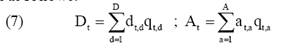 In equation (7), Dt is amortizations of fixed assets (FAt), while At is depreciation; dt,d and at,a are the costs per unit, at a given time t, of amortizations and depreciation; these costs are, respectively, part of D : D ³ 1 and A : A ³ 1., with their respective quantities qt,d and qt,a. Balance of the financial operation (SFt), at t, is as follows: