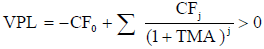 Souza & Clemente (2008) afirmam que um projeto será atrativo se a soma do Fluxo Esperado de Benefícios total for maior que o investimento. O tempo zero geralmente é determinado como data para concentrar os valores e a Taxa Mínima de Atratividade (TMA) é que descapitaliza o fluxo de caixa, com a melhor taxa e baixo grau de risco. Desse modo, o investidor pode optar por investir no projeto ou na taxa de atratividade.