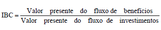 No Valor Presente Anualizado (VPLa) todo o fluxo de caixa é transformado em uma série uniforme ao longo dos anos do investimento e conforme os cálculos ficou em R$ 2.995,05. Já o Índice Benefício/Custo (IBC) é descrito por Souza & Clemente (2008), como a medida de quanto se espera ganhar por unidade de capital investido. Neste caso, é de 3,91 e tanto o VPLa quanto o IBC devem apresentar valores maiores que zero para resultados satisfatórios.