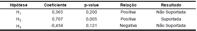 Na intenção de melhor ilustrar os resultados referentes as hipóteses H1, H2 e H3, testadas na presente pesquisa, apresenta-se no Quadro Nº 3