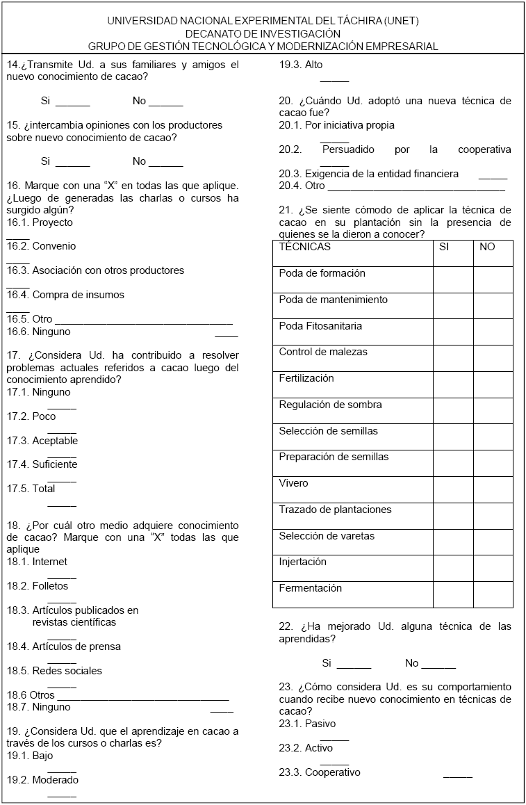 Keywords: Cocoa, cooperatives, knowledge, social appropriation of knowledge, Tachira, technical assistance, Venezuela.