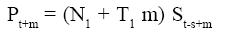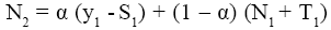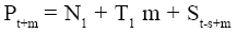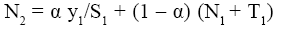 (3)Onde: N2 e N1 são as previsões para os períodos; T1 e T2 são as previsões de tendência para os períodos, α e β são as constantes de suavização com valores entre 0 e 1 e y1 é o valor observado na série temporal.