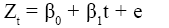 (12)Onde: β0 e β1 são o intercepto e a inclinação, respectivamente, e os parâmetros desconhecidos. O método clássico de mínimos quadrados (ou regressão) é utilizado para estimar os parâmetros β0 e β1.
