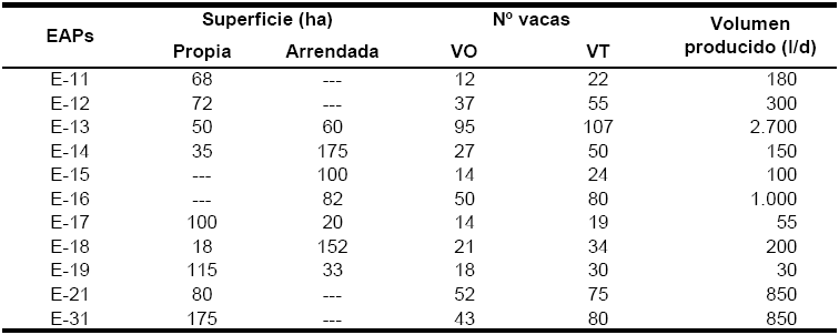 En estas unidades la producción láctea no siempre representa la actividad principal del predio. Más aún, si se tiene en cuenta la cantidad de vacas destinadas al tambo sobre la composición total del rodeo, en algunas explotaciones se puede afirmar que la producción de leche ocupa un lugar secundario en los ingresos totales de estos establecimientos, representando una cantidad inferior al 10% del total de cabezas vacunas de esos predios.