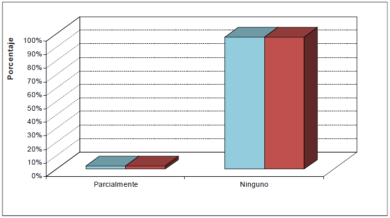 El nivel de información previa para la tramitación del SCA (Gráfico Nª 8) que poseían 2,5% de los prestatarios es parcial, frente a 97,5% de productores que no poseen ninguna información previa. En cuanto a la asesoría técnica, 100% de los productores agrícolas (41) no han recibido alguna en relación con la tramitación del beneficio del SCA.