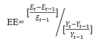 The EE represents the ratio between the relative change in employment (.) and the relative change in output (Y):