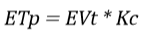 Para el cálculo de Evapotranspiración potencial la fórmula de Blanney-Criddle (Cevallos, 2010) ha sido reportada por equipos de investigación de la ONU como aquella que produce resultados relativamente aceptables y consistentes tanto en climas áridos como en húmedos, en casos en los que no existe suficiente información para calcular la ETp con otros métodos. La ETp, según Blanney-Criddle, fue determinada para las condiciones climáticas del área de estudio, mediante la siguiente expresión: