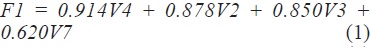 Considering that the factors can be represented by the linear relationship between the variables, it can be expressed by the following equations: