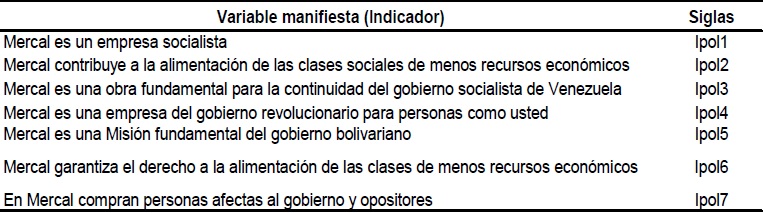 En este contexto, la imagen política de Mercal se midió a partir del núcleo ideológico del grupo político en funciones de gobierno (Tabla Nº 4), caracterizado por una terminología distintiva, con definiciones generalmente ambiguas (Capriles, 2006). Destacan entre ellas las expresiones o ideas con las cuales se identifica dicho gobierno (Canelón, 2016): bolivariano, revolucionario, socialista, centrado en los pobres, inclusión social y continuidad en el poder, entre otras, que son asociadas –en este caso– a una política pública como elementos de su estrategia comunicacional. Con base en la escala mostrada en la Tabla Nº 4, se propone la hipótesis siguiente: