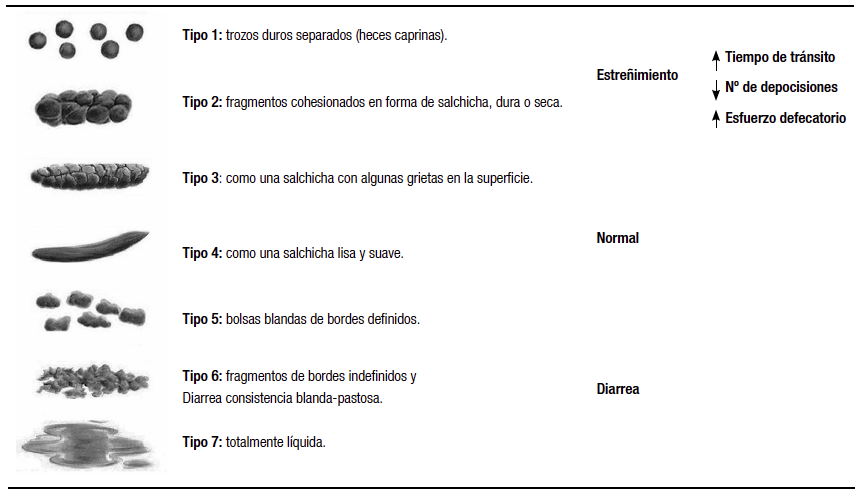 En la respuesta positiva al grupo prucalopride las heces fueron normales o levemente diarreicas, tipos 3, 4, 5, mientras que en el grupo lactulosa/bisacodilo, fueron diarreicas, tipos 5 y 6.