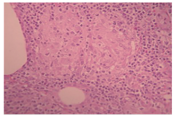 El compromiso ganglionar es frecuente, se estima en un 9% aproximadamente, sobre todo a nivel abdominal en forma de granulomas epitelioides no caseificados y con células gigantes.5, 17 Dicho compromiso fue clave para arribar al diagnóstico en el caso presentado.