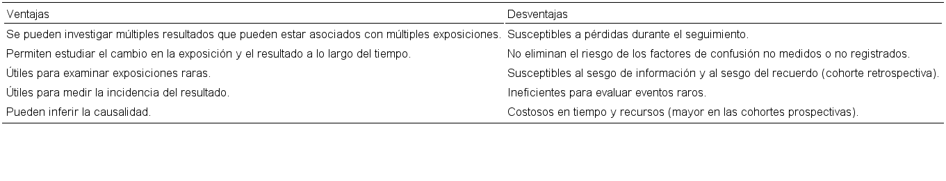 Entre los objetivos de los estudios de cohorte se destacan: conocer los aspectos de la historia natural o el curso clínico de una enfermedad o de un evento de interés, determinar tasas de incidencia y riesgos, identificar factores protectores o de riesgo para el desarrollo de un evento de interés, estudiar la supervivencia, etc. Las ventajas y desventajas de los estudios de cohorte pueden observarse en la tabla 1.