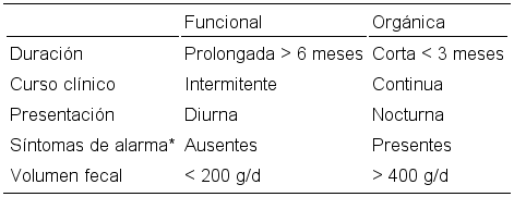 El SII afecta a aproximadamente el 20% de la población. Los síntomas del SII-D y la DF muchas veces se asemejan a los presentes en otras situaciones clínicas como en la EC, el SBID, la intolerancia a los hidratos, la intolerancia a los FODMAP y la sensibilidad al gluten no celiaca (SGNC). El diagnóstico diferencial es un desafío y las distintas pruebas diagnósticas y terapéuticas serán de gran ayuda. Es importante evaluar la presencia de los signos y los síntomas de alarma, llamados "banderas rojas": la pérdida de peso no intencional, el sangrado rectal, la historia familiar de cáncer colorrectal, la anemia, la masa rectal o abdominal, los síntomas nocturnos, los marcadores de inflamación elevados (ESD o PCR), la diarrea sanguinolenta o mal estado general y la diarrea de < 3 meses de duración nos orientan a causas orgánicas. La ausencia de ellos, en conjunto con síntomas como los definidos en los criterios de Roma IV (Tabla 3) y un examen físico normal, sugiere un trastorno intestinal funcional: un síndrome del intestino irritable con predominio de diarrea (SII-D) o una diarrea funcional (DF). Su especificidad es solo de aproximadamente del 52 al 74% y estos criterios no excluyen de manera confiable la EII, la colitis microscópica o la diarrea por ácidos biliares.4