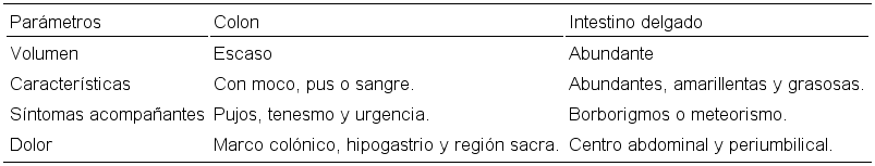 características de las deposiciones: presencia de moco, pus, sangre o esteatorrea;