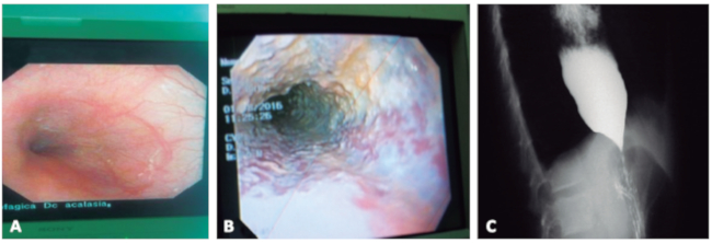 La endoscopia descartó obstrucción mecánica o pseudoacalasia en todos (Figura 3).