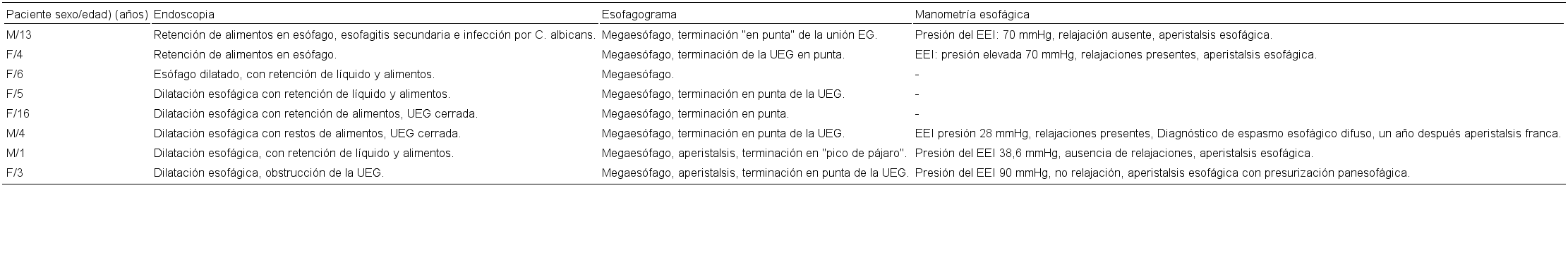 Los hallazgos radiológicos, manométricos y endoscópicos se muestran en la Tabla 3.