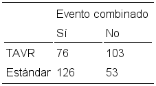 En la Tabla 2, se muestran datos del estudio PARTNER con seguimiento a 2 años, que aleatorizó a pacientes con estenosis aórtica severa y un alto riesgo quirúrgico a TAVR (Transcatheter aortic-valve replacement) o manejo estándar. El evento primario se definió como muerte y reinternaciones.3 Siguiendo los mismos pasos del ejemplo anterior, si calculamos el RR y el OR, los resultados son 0,60 y 0,31. Como se observa, las medidas de efecto son muy similares en el ejemplo de la espironolactona y muy distintas en el caso del estudio de intervención percutánea de la válvula aórtica. Es importante destacar que, cuando el evento en cuestión es frecuente, el OR sobrestima el efecto y es conveniente expresar los datos como un RR.4