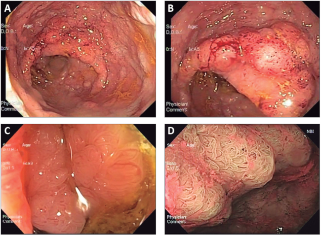 Se le realizó una videocolonoscopía (VCC), donde se observó LST de tipo granular no homogéneo, que ocupaba desde el margen anal hasta los 18 cm de forma circunferencial y continua.