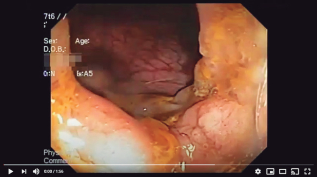 Un hombre de 73 años es alcohólico y tabaquista en abstinencia. Consultó al servicio de emergencias por síncope. Refirió una diarrea de seis meses de evolución, de consistencia líquida, con 4 a 6 deposiciones por día, de escaso volumen, acompañada de pujos y tenesmo rectal, sin otra sintomatología digestiva ni sistémica.