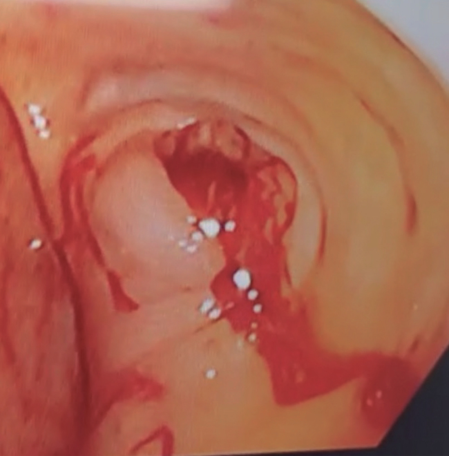 Un paciente de sexo masculino de 64 años, sin antecedentes de relevancia, consulta en la central de emergencias por cuadro de hematoquecia de una semana de evolución, asociado a astenia y pérdida de peso. Al examen físico, el paciente no presentaba dolor ni masa palpable abdominal. Al tacto rectal se constata presencia de restos de sangre fresca. El resto del examen físico fue normal.