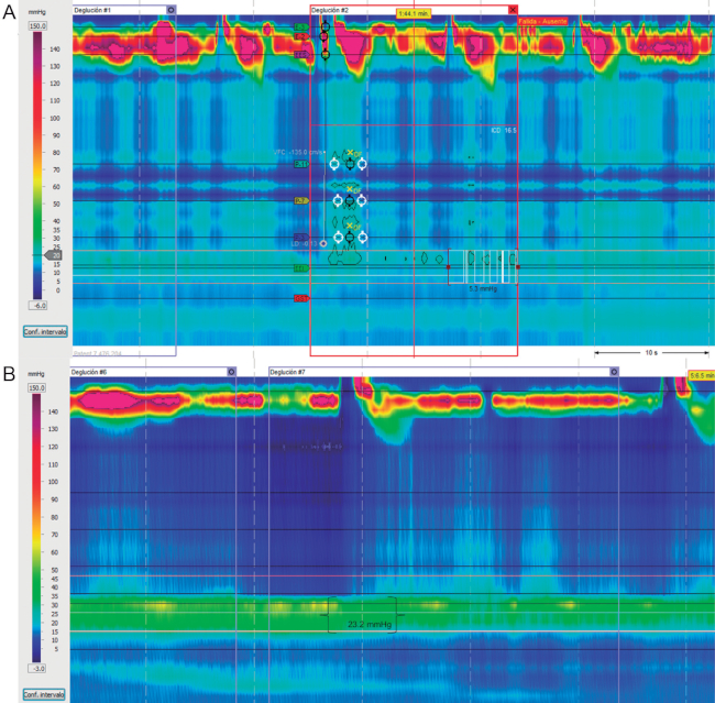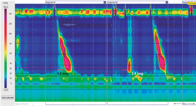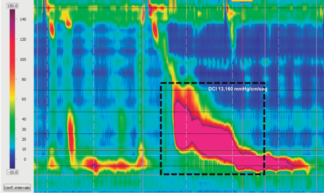 De acuerdo con la clasificación de Chicago v3.0 su definición actual se basa en la presencia de al menos 20% de contracciones prematuras (latencia distal [LD] < 4,5 segundos) y con DCI > 450 mmHg/s/cm en presencia de una relajación de la UEG normal (Figura 2).1