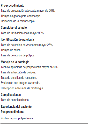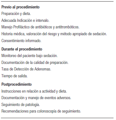 Recientemente, el grupo de Calidad en Endoscopía del Colegio Americano de Gastroenterología y de la Asociación Americana de Endoscopía Gastrointestinal (ACG/ASGE según sus siglas en inglés) establecieron una serie de medidas para mejorar la calidad en endoscopía, las cuales se señalan en la Tabla 2. También la Sociedad Europea de Endoscopía Gastrointestinal ha hecho una revisión cuyos puntos más relevantes se encuentran resumidos en la Tabla 3.
