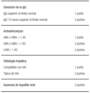 ANA: anticuerpos antinucleares; SMA: anticuerpos antimúsculo liso; LKM: anticuerpos microsomales de hígado y riñón; IgG: inmunoglobulina G; HAI: hepatitis autoinmune.