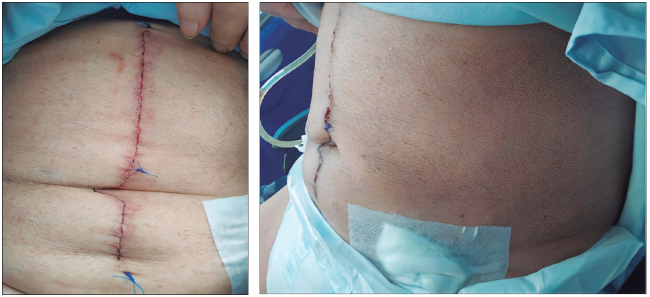 En los días siguientes al desbridamiento y lavado retroperitoneal bilateral, el paciente evolucionó de manera satisfactoria con mejoría de los parámetros hemodinámicos, la resolución de la lesión renal y de los cambios inflamatorios locales. Se le dio egreso al décimo día posoperatorio (Figura 3).