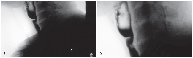 Paciente femenina de 47 años que, desde los 6 años, presentó cuadros frecuentes de anemia ferropénica, decaimiento general y astenia, habiendo requerido transfusiones de sangre. En cuatro oportunidades (12, 10, 9 y 8 años antes de la consulta actual), fue sometida a estudios endoscópicos digestivos altos, los que fueron informados a nivel duodenal como normales, sin realización de biopsias de la mucosa del duodeno. Ocho meses antes de la consulta, al ingerir un comprimido medicamentoso, presentó un cuadro de ahogo por obstrucción, con sensación de pánico, que motivó que su alimentación, desde ese momento, fuese solo a base de papillas y alimentos blandos. Concurrió a la consulta, adjuntando analíticas que indicaron la existencia de una anemia ferropénica, con bajos niveles de ferritina. También adjuntó imágenes de una videodeglución, realizada tres meses antes de la consulta actual, que evidenció una falta de relleno de 2 x 7 mm, con obliteración del 75% de la luz esofágica, y otra imagen similar, 2 cm por debajo de la primera, dispuesta en sentido contrario, que obliteraba la luz en un 50% (Figuras 1 y 2). Los exámenes de laboratorio mostraron: Hb: 7,0 g/dL, VCM 57.42fL, HCM 15.82pg, hierro sérico 21 ug/dl, transferrina (TIBC) 286, saturación de transferrina 7%, ferritina sérica 12 ng/ml, anisocitosis, hipocromía y microcitosis.
