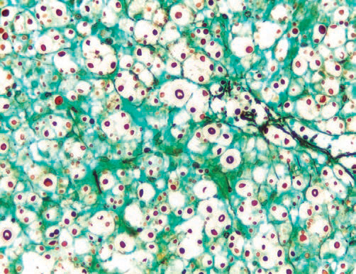 Las levaduras de criptococo son encapsuladas, de forma esférica u ovalada y miden entre 5 y 10 micrones de diámetro. Al igual que otros hongos, se tiñe con técnicas de metenamina plata (Grocott), ácido periódico de Schiff y mucicarmín, siendo el único patógeno fúngico humano con una pared de polisacáridos que se tiñe con cualquiera de las técnicas para mucina. Los diagnósticos diferenciales histológicos a considerar son la Candida glabrata y el histoplasma, sobre todo cuando el criptococo ha perdido su cápsula o esta no es muy prominente.2, 13