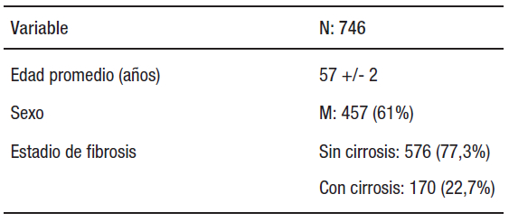 En nuestra experiencia, el tiempo de progresión a cirrosis fue menor a lo evaluado en el estudio de Kratch et al.10 (6 años vs. 9 años, respectivamente), lo que podría deberse a que la medición de la fibrosis, tanto la previa como la posterior a la revinculación, fue realizada con diferentes métodos.
