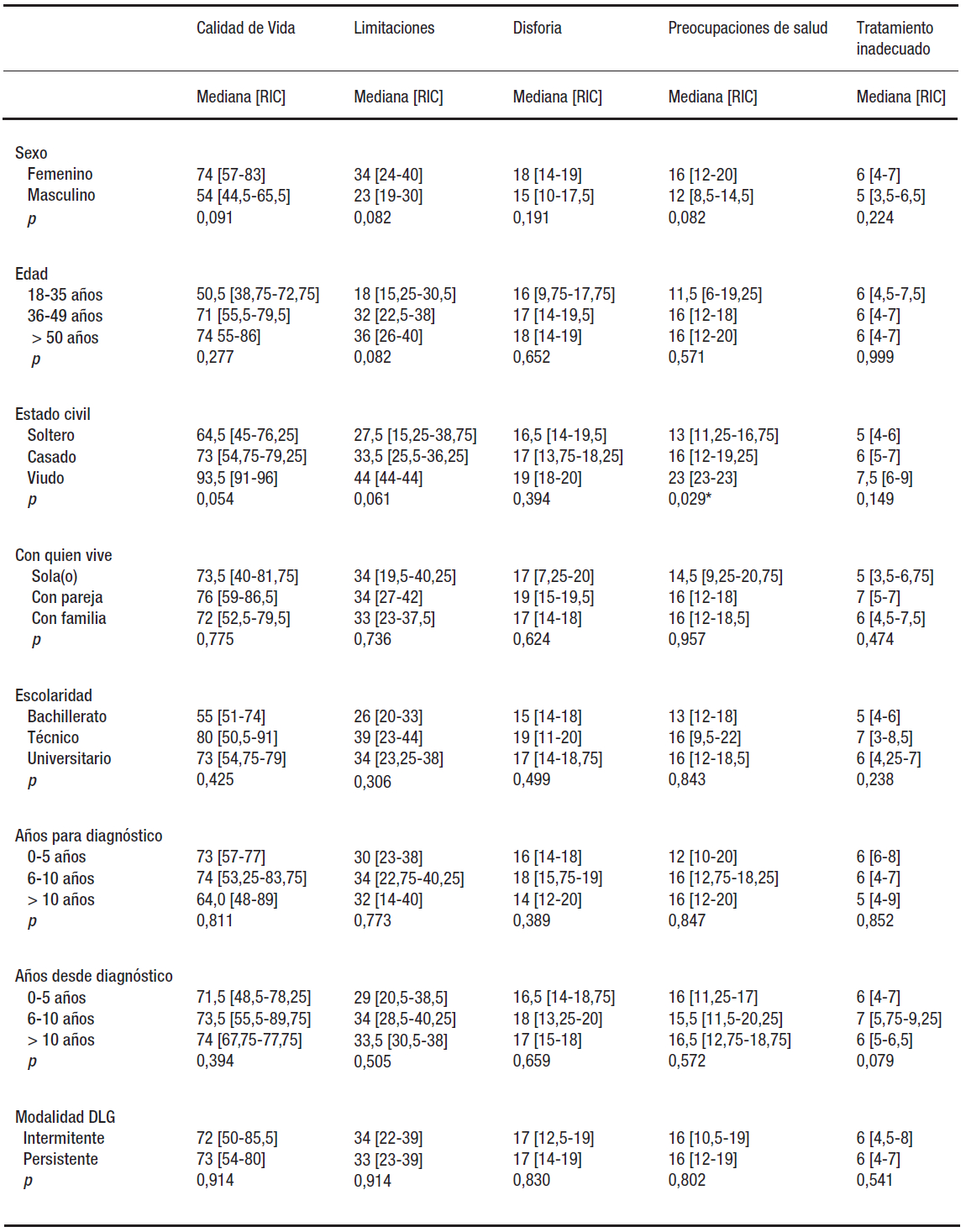 * Valor estadísticamente significativo. RIC: Rango intercuartílico.