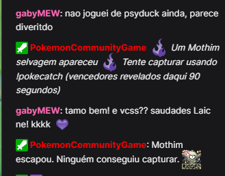 1 GabyMew es la usuaria y una de las autoras del texto, mientras que PokemonCommunityGame es un bot utilizado por streamers y usuarios de la plataforma TwitchTV.