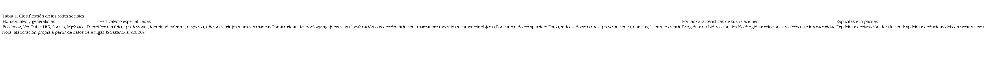 En su aspecto más general, las redes sociales pueden ser horizontales o generalistas, verticales o especializadas, por las características de sus relaciones, explicitas e implícitas (Tabla 1).