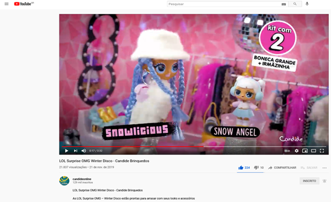 En síntesis, el análisis de la muestra revela la presencia de diversos formatos de discurso que ofrecen muchas posibilidades de sentidos. La diversidad de géneros y formatos es el resultado de la hibridación de los lenguajes de los medios de comunicación, según lo señalado por Pieniz e Cenci (2019). La plataforma de YouTube ofrece varias formas de que las marcas se presenten al público infantil, y observamos que el mismo discurso puede ser presentado por medio de diferentes estrategias comunicacionales, sin embargo, admitimos que no siempre los niños, dependiendo de la edad, son capaces de percibir esta complejidad.