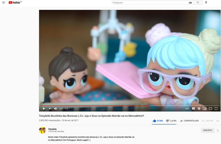 Los juegos y los juguetes surgen en estos canales como la temática (...) para conectar a los niños y formar nuevas redes sociales, donde ellos podrán conquistar más suscriptores, más seguidores, más fans. (...) Fue a través de videos relacionados con el universo infantil que ellas se convirtieron en YouTubers famosas (2019, p. 119).