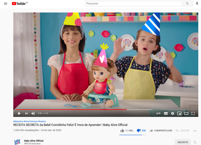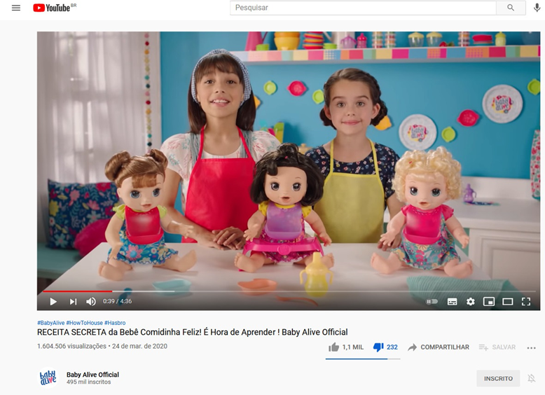 Hasbro. (2020, 24 de marzo). RECEITA SECRETA da Bebê Comidinha Feliz! É Hora de Aprender! Baby Alive Official. Recuperado de: https://www.youtube.com/ watch?v= gaKdKn YOlJg&t=49s.