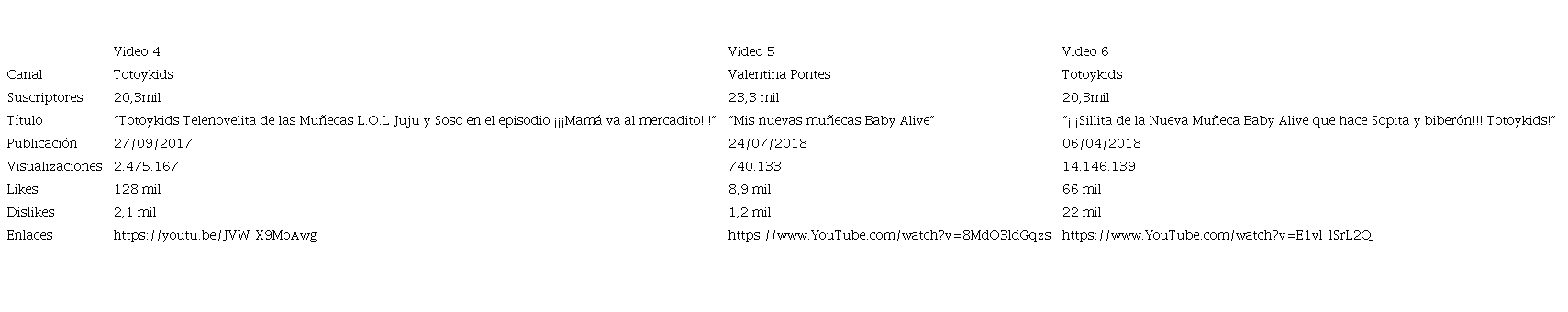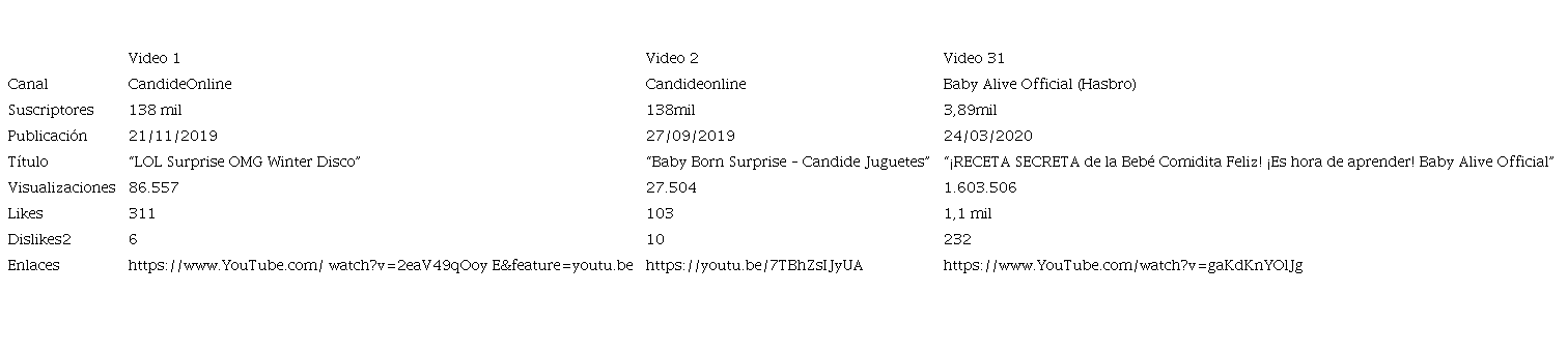FUENTE: YouTube Candideonline y YouTube Baby Alive Official. Producida por los autores.