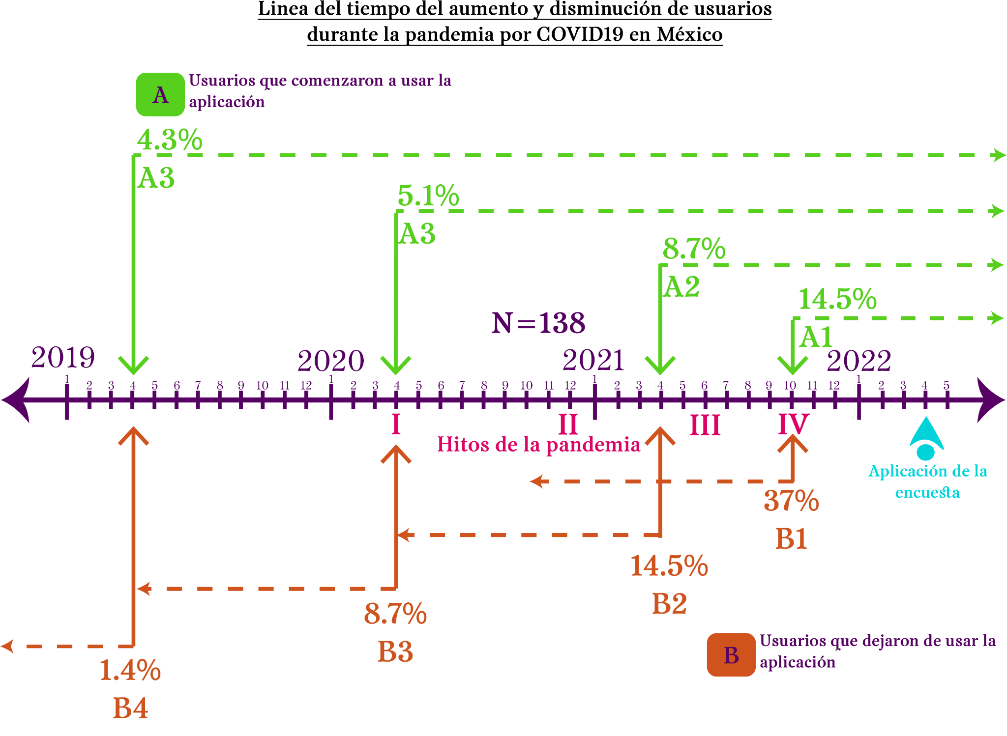 Cronología del aumento y disminución de usuarios durante la pandemia.