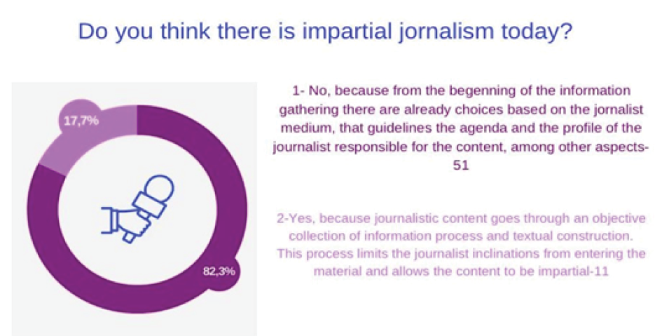 Our article raised the following questions to students: How do you see the credibility of journalism today, in the midst of so much misinformation and fake news? Is there impartial journalism within this context? Would this much-idealized impartiality be the way for journalism to remain relevant? These are central questions of our research.