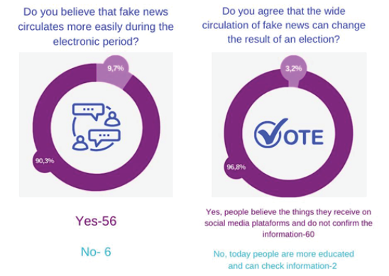 For 90.3%, fake news circulates more frequently in election years; On the other hand, 9.7% did not agree. At the same time, 96.8% stated that the large circulation of distorted/false news during the elections on social media platforms can change the outcome of the election; and only 3.2% reported that they did not, because people are more educated and can check the information.