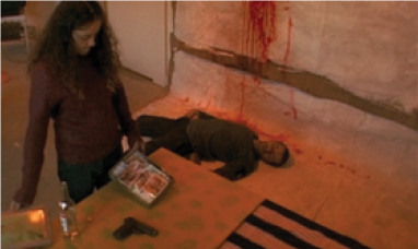 Around blood, weapons, and explicit scenes of violence, the spectator walks morally and sensorially to reflect paradoxically on the values imposed by society. "What if it was him, not her?" "... what if I did the same as you did to me."