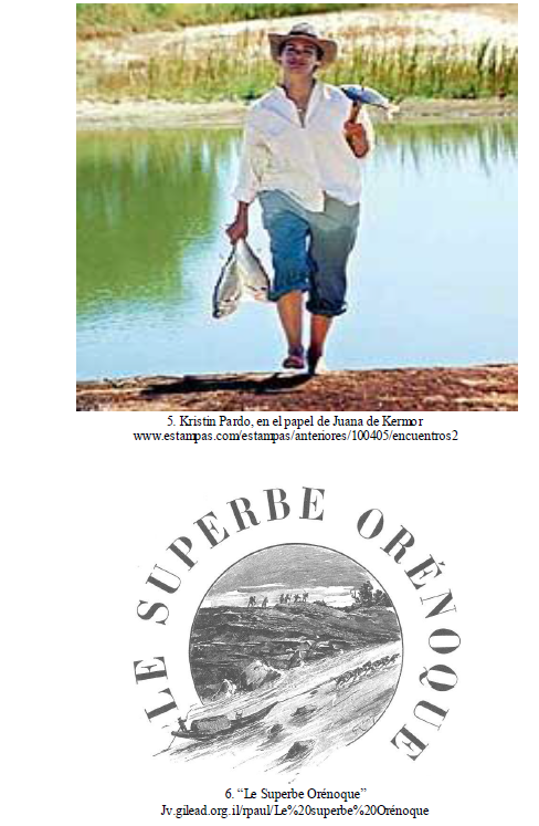 En segundo término, el director venezolano ofrece al público una versión actualizada del Soberbio Orinoco. En el capítulo quince, por ejemplo, Verne descubre la auténtica identidad de Juan de Kermor, que en realidad es una mujer disfrazada de varón, estrategia inventada para protegerse en tan arriesgado viaje. En la película, también inicialmente este personaje asume otro rol, si bien las circunstancias en que se desvela el misterio son distintas. En el Soberbio Orinoco, uno de los exploradores franceses intuye el secreto de Juan, o mejor, de Juana de Kermor22. En la película, es mucho más explícito: la protagonista se quita toda su ropa para darse un baño y es sorprendida por uno de los compañeros de viaje.