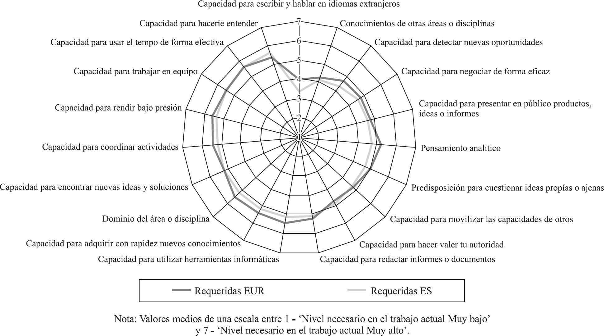 Como se puede apreciar en la figura 1 las capacidades más valoradas en el ámbito educativo en España son: capacidad para hacerse entender, capacidad para usar el tiempo de manera efectiva, capacidad de trabajar en equipo, capacidad de rendir bajo presión, capacidad para coordinar actividades, capacidad para encontrar nuevas ideas y soluciones, dominio de áreas o disciplinas, capacidad para adquirir con rapidez nuevos conocimientos, capacidad para utilizar herramientas informáticas. Estas capacidades son las más destacadas según la ANECA, y a continuación se van a analizar qué competencias son las que se solicitan en las ofertas laborales reales.