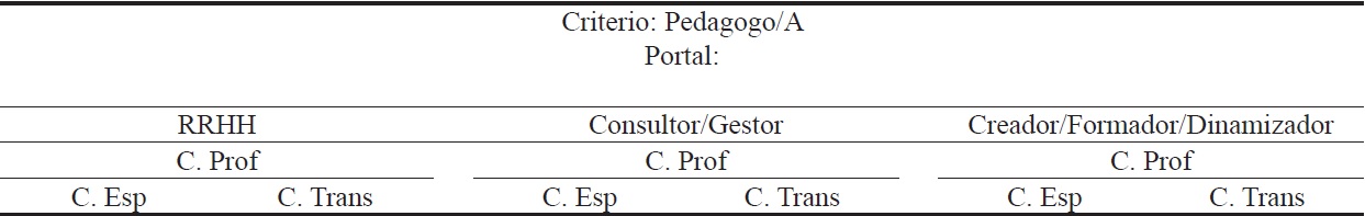 De cada una de las ofertas laborales se han extraído las competencias profesionales solicitadas, dando lugar a una tabla en la que se incluían: las competencias específicas así como las competencias transversales solicitadas. Para la categorización y análisis de la información se elaboró una matriz de análisis, que se muestra en la tabla 3.